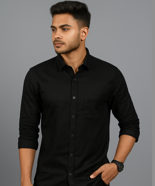 Oxford Cotton Full Sleeve Shirt-Black